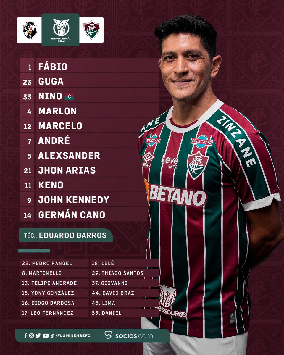 Veja a escalação do Fluminense para o jogo contra o Vasco; ex-vascaínos Fábio e Cano são titulares