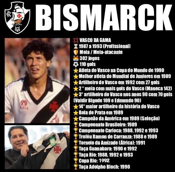 Hoje é aniversário do ídolo Bismarck, 54 anos, cria de São Januário e um dos grandes meias da história do Vasco da Gama. Marcou época na SeleVasco e destaque no Bicampeonato Brasileiro em 89. Além do Vasco, fez sucesso e deu sua contribuição no crescimento do futebol japonês!🎂💢
