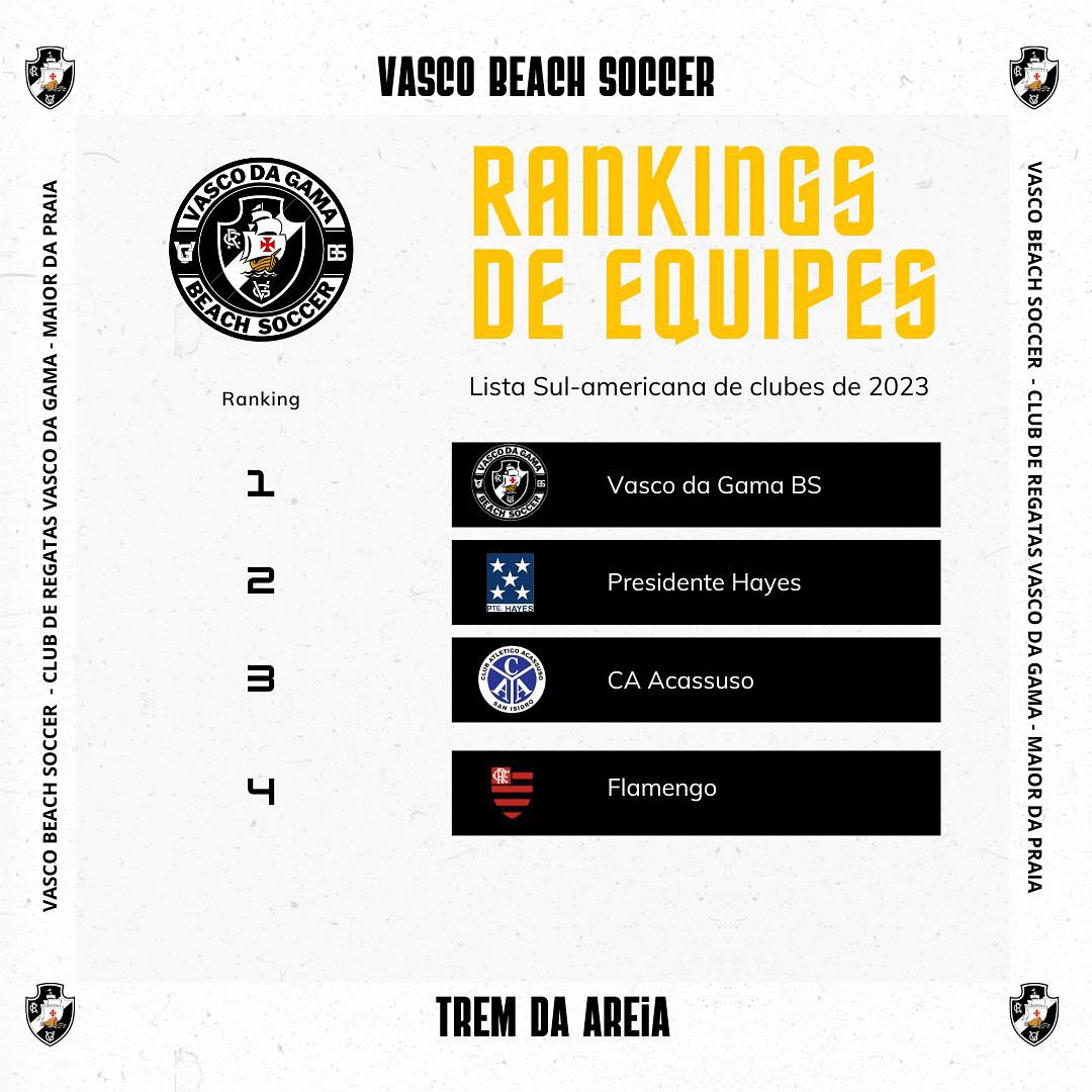 Vascaínos! Saiu o ranking Sul-americano de clubes baseado na pontuação da @beachsoccerworldwide 2023.