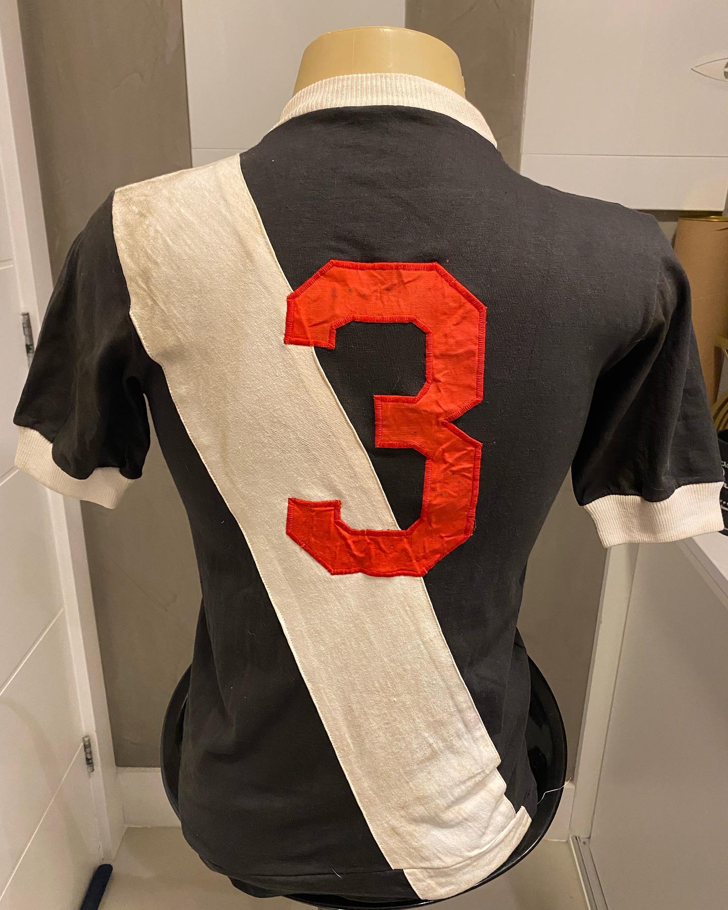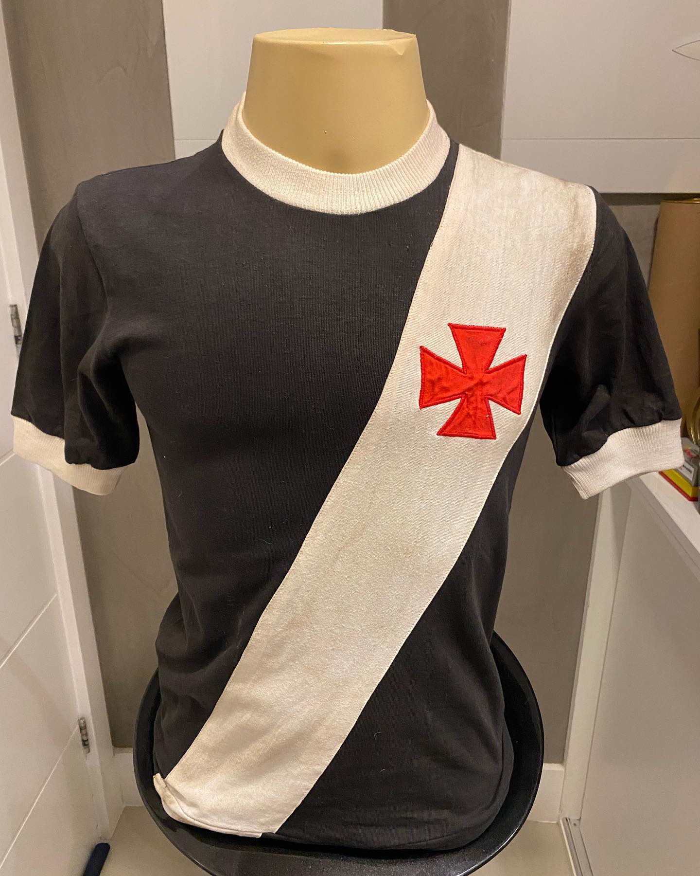 Gosto muito desse modelo de camisa na gola redonda. Este item veio da família de um grande Zagueiro que jogou no Vasco na década de 60. Infelizmente não posso divulgador o nome do jogador por um pedido da família.