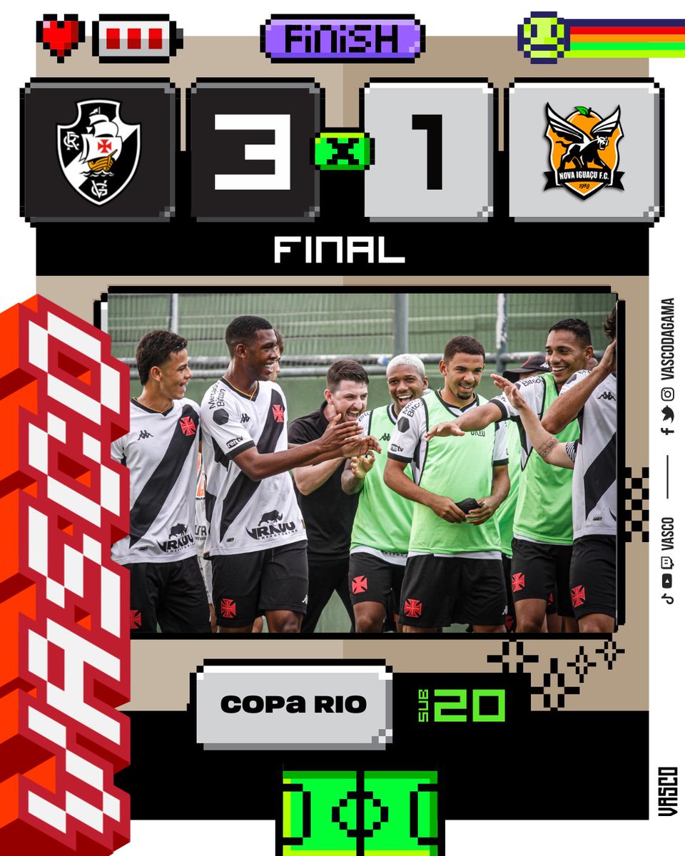 A equipe Sub-20 do Vasco da Gama se classificou para a semifinal da Copa Rio/Otávio Pinto Guimarães após vencer novamente o Nova Iguaçu por 3 a 1 na tarde desta quarta-feira, no Estádio Nivaldo Pereira, em Nova Iguaçu (RJ), pelo jogo de volta das quartas de final. O placar agregado das duas partidas foi de 6 a 2. Rayan, Lucas Eduardo e Paulinho anotaram os gols do Vasco, que agora aguarda o adversário da semifinal, que sairá do confronto entre Sampaio Corrêa e Fluminense.