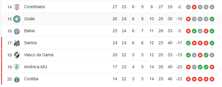 🚨PANORAMA ATUAL: Caso o Vasco da Gama vença seus dois jogos a menos (Coritiba e América MG, respectivamente), o Cruzmaltino irá ultrapassar o Goiás e assumir a 15ª posição do Campeonato Brasileiro.