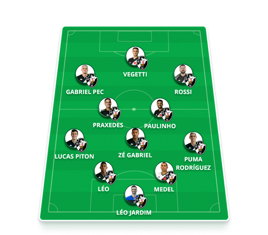 Provável time: Léo Jardim, Puma Rodríguez, Medel, Léo, Lucas Piton, Zé Gabriel, Paulinho, Praxedes, Rossi, Gabriel Pec (Marlon Gomes) e Vegetti.