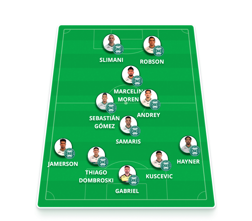 Provável time: Gabriel; Rhayner, Kuscevic, Thiago Dombroski e Jamerson; Samaris, Sebastián Gómez, Andrey (Fransérgio); Marcelino Moreno, Robson e Slimani.