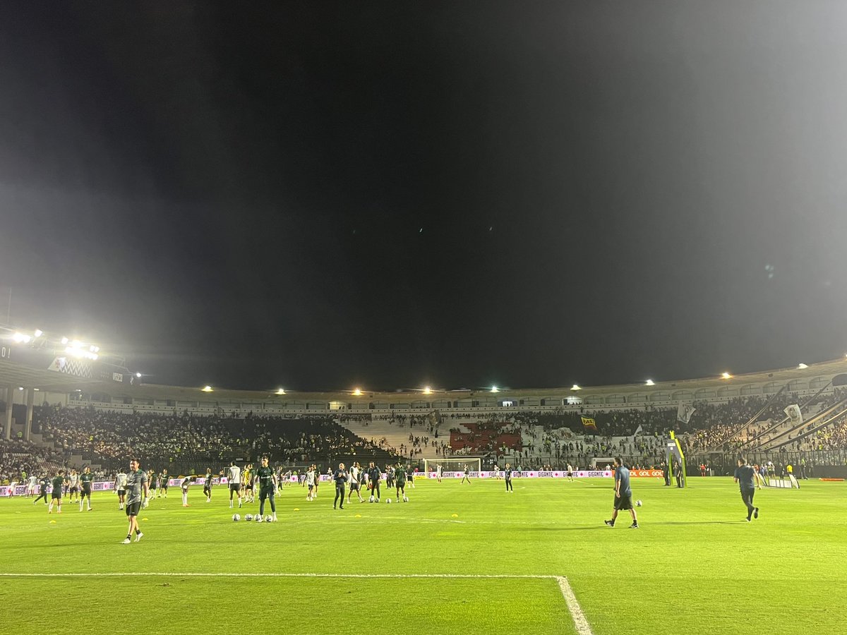 Jogadores de Vasco e Coritiba se aquecem no gramado de São Januário