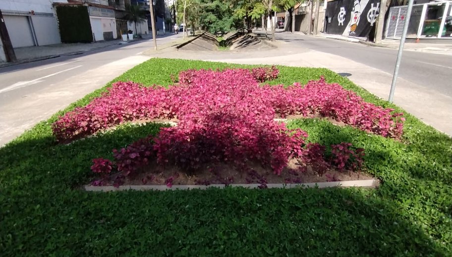 Veja fotos do canteiro em forma de Cruz de Malta nas imediações da sede náutica da Lagoa
