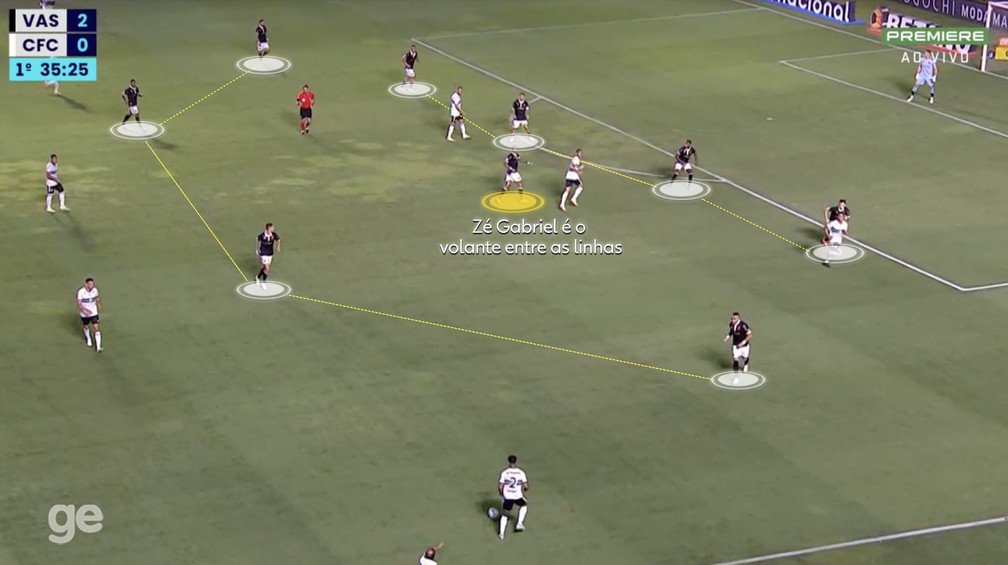 Esquema base: 4-1-4-1, com Zé Gabriel de primeiro volante