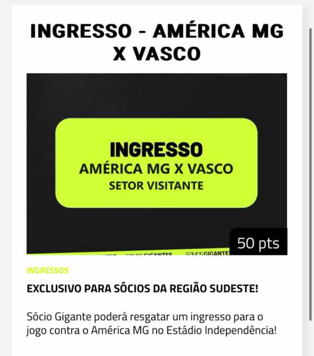 ATENÇÃO! Resgate de ingressos para América x Vasco no site do Sócio Gigante.