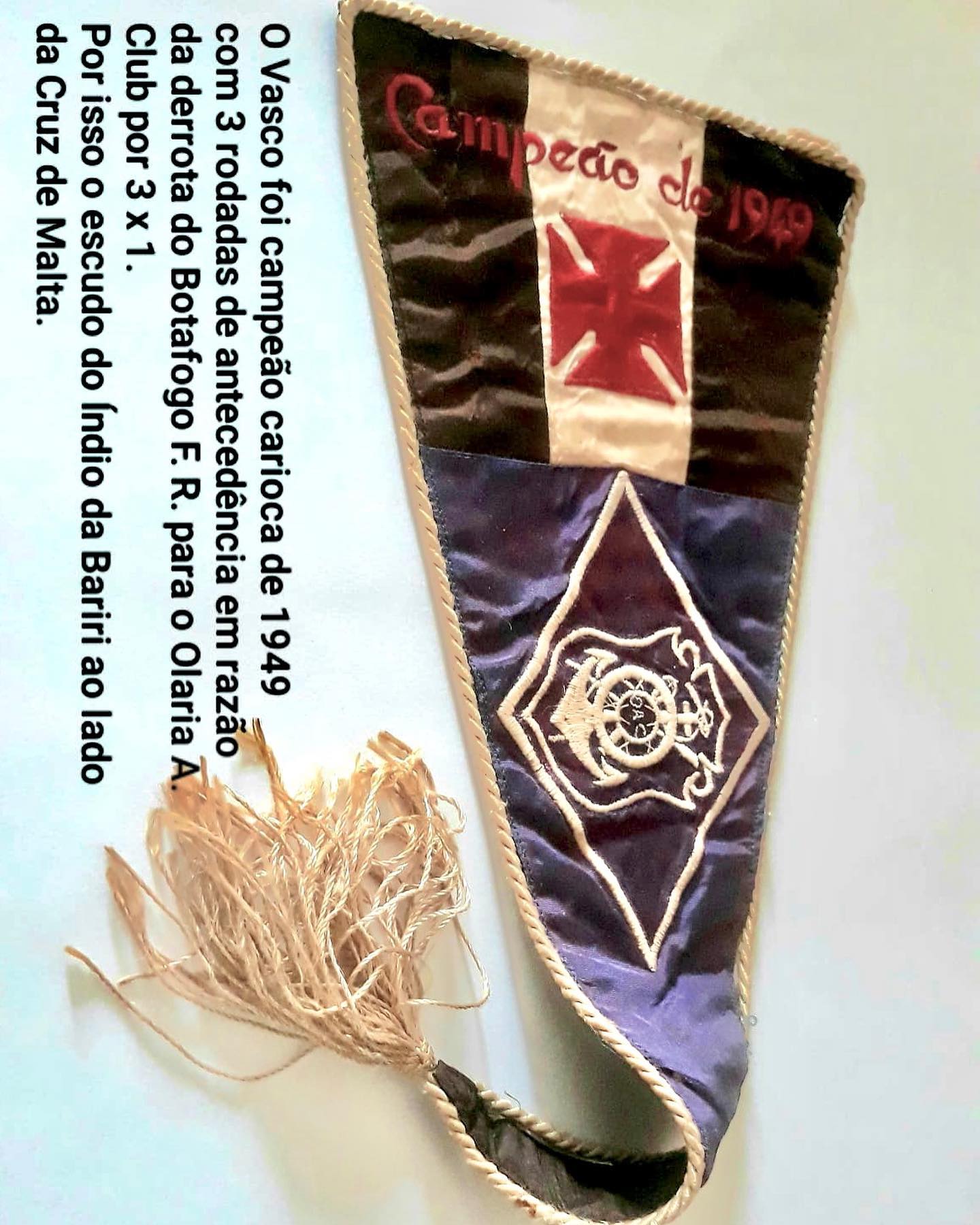 E veja que bacana, na flâmula temos a Cruz de Malta e também o escudo do Olaria A. Clube.