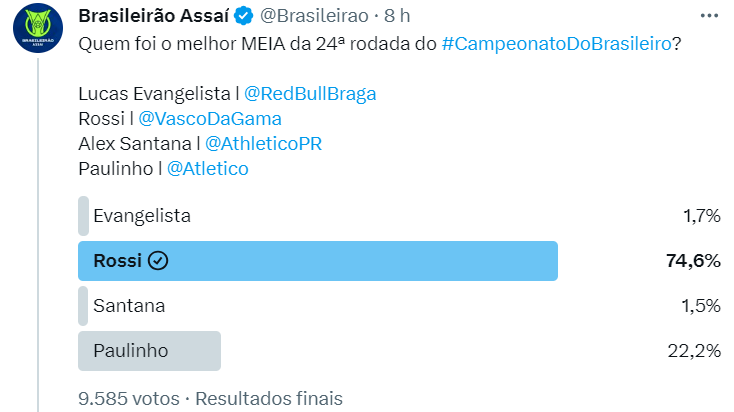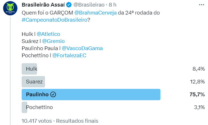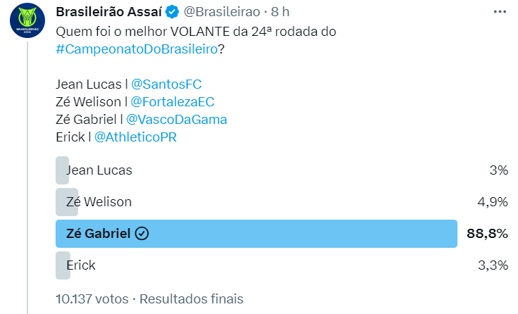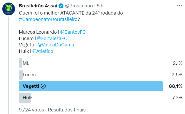 Vascaínos massacram na eleição da #SeleçãoDoTorcedorBR23 da 24ª rodada; veja os resultados