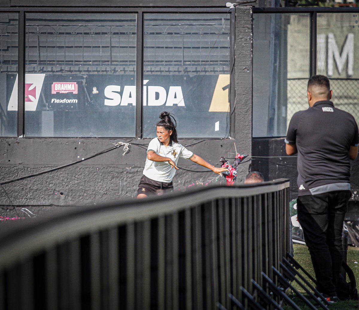 Feminino: Veja foto da jogadora Índia destruindo pipa do Urubu que caiu no gramado de São Januário