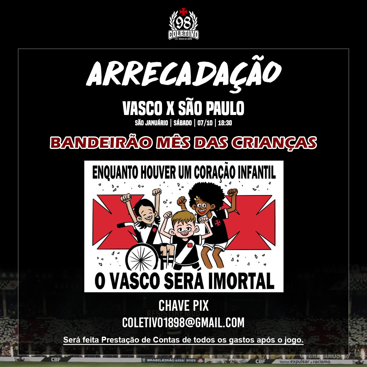 Coletivo 98 inicia arrecadação para confecção de bandeirão homenageando crianças vascaínas
