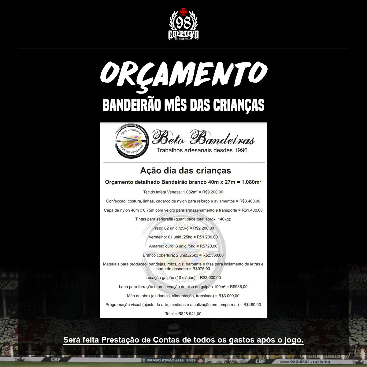 Orçamento detalhado para a confecção do Bandeirão.