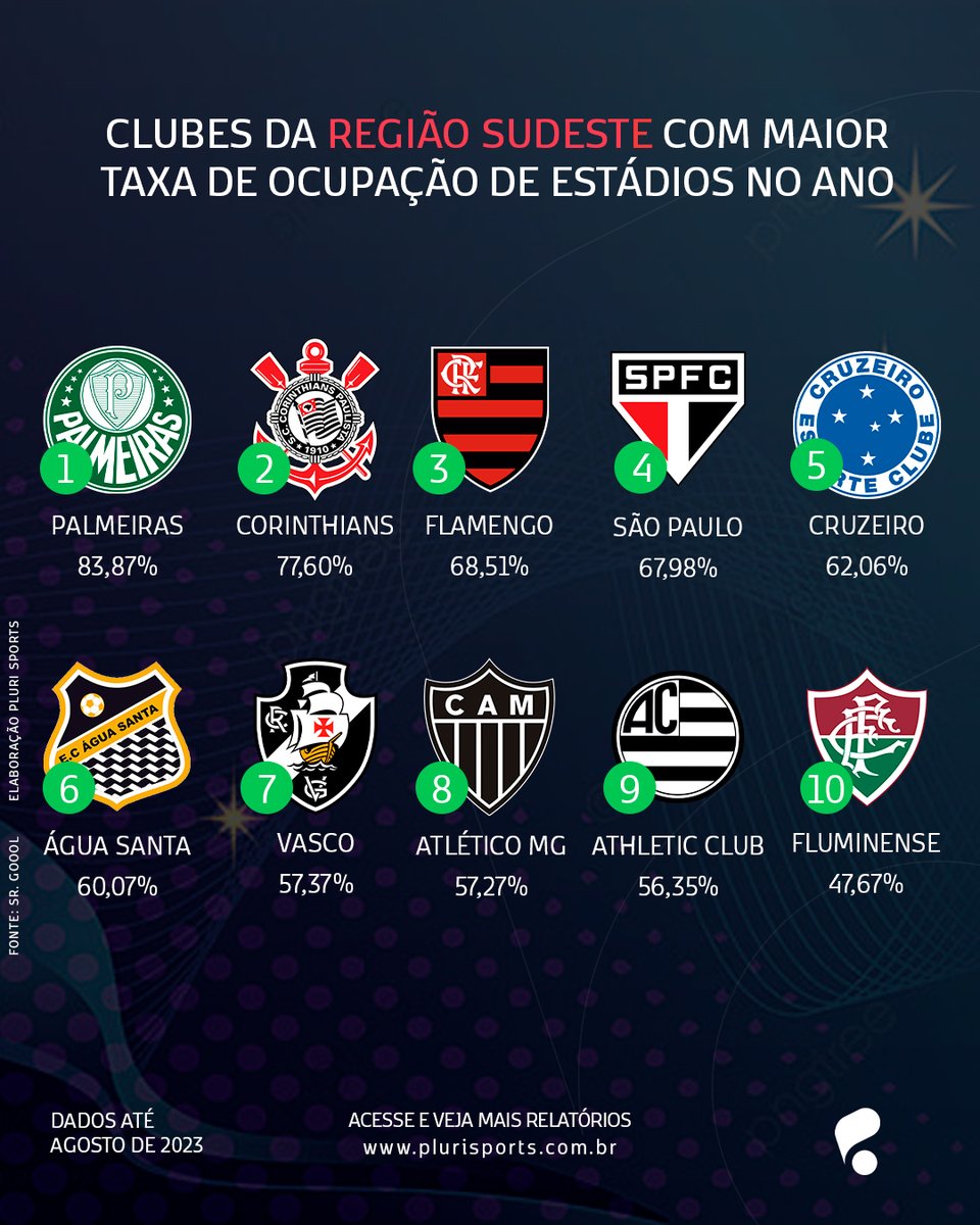 O Palmeiras continua sendo o único clube na região com uma taxa de ocupação superior a 80%, consolidando sua posição no topo do ranking da temporada 2023.