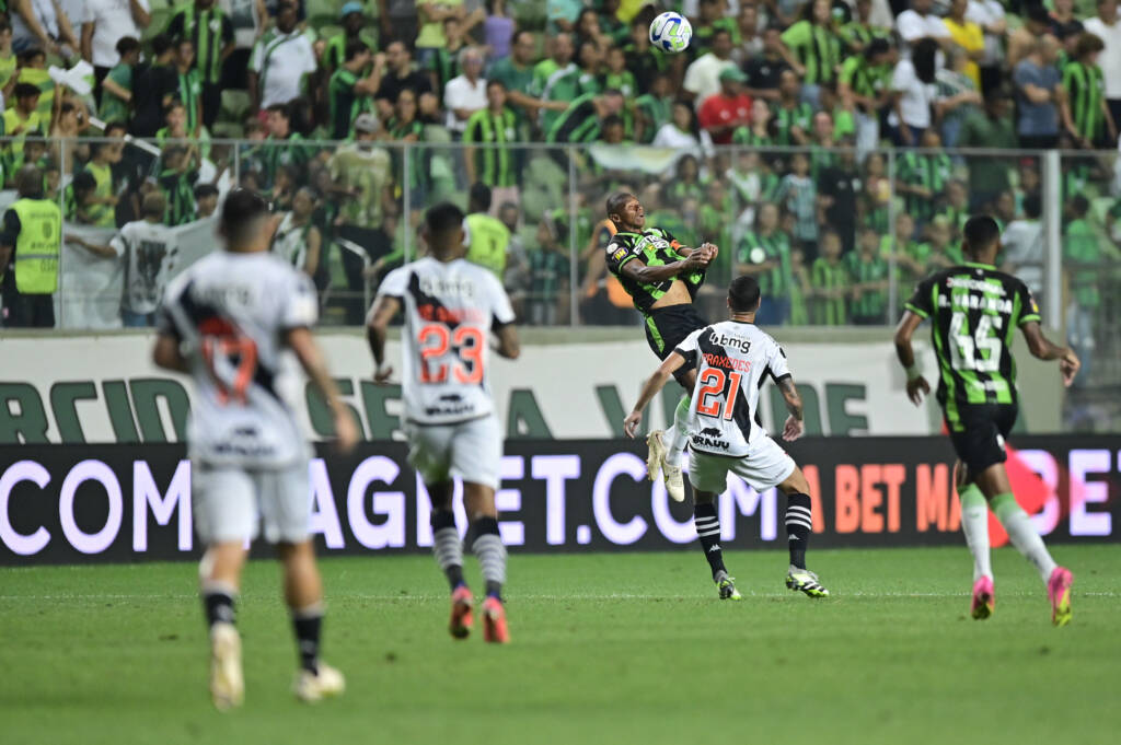 O América-MG seguiu melhor nos minutos finais. Só que nos acréscimos, o zagueiro Maidana acertou o rosto de Vegetti. O árbitro foi chamado pelo VAR e expulsou o mineiro, deixando os donos da casa com um a menos pouco antes do intervalo.