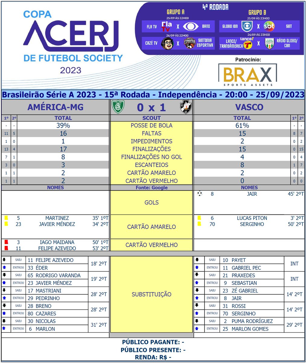 Scout Final de América-MG e Vasco pela 15ª Rodada do Campeonato Brasileiro 2023 no Independência (Fonte: Google) #Acerjinforma #Brasileirao #AMExVAS #AmericaMG #Vasco @Brasileirao @AmericaFC1912 @VascodaGama