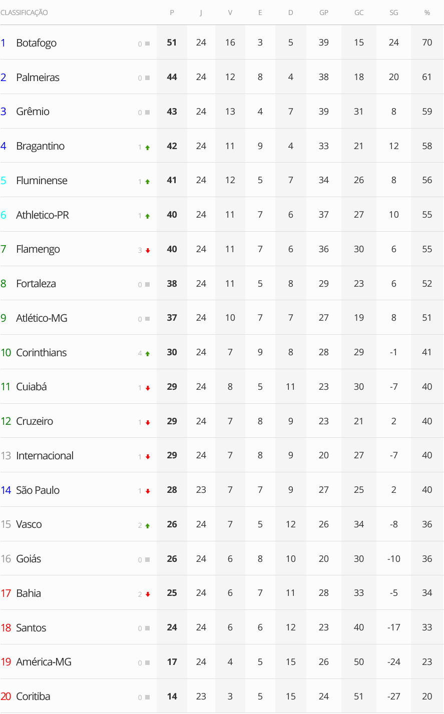 Com a vitória sobre o América-MG (1 a 0), em jogo atrasado da 10ª rodada, o Vasco deixou a zona do rebaixamento e subiu para a 15ª colocação.