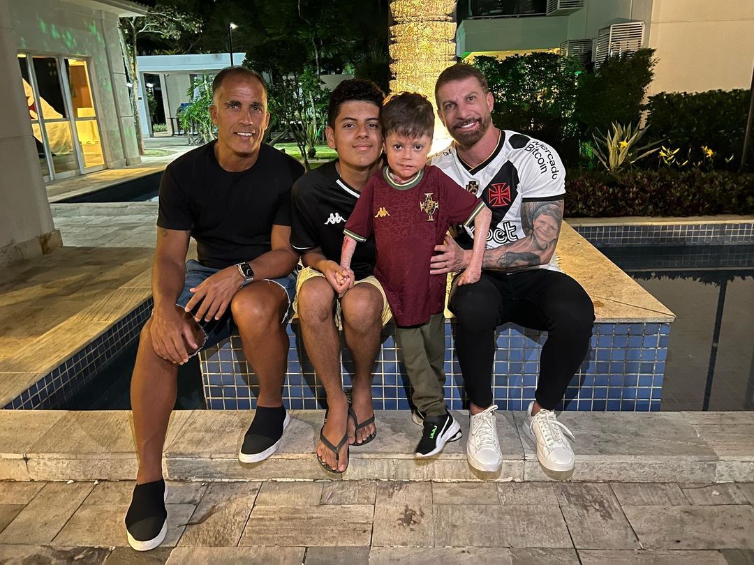 Nosso amuleto Gui assistiu ao jogo do lado dos ídolos Pedrinho e Felipe. 💢❤️