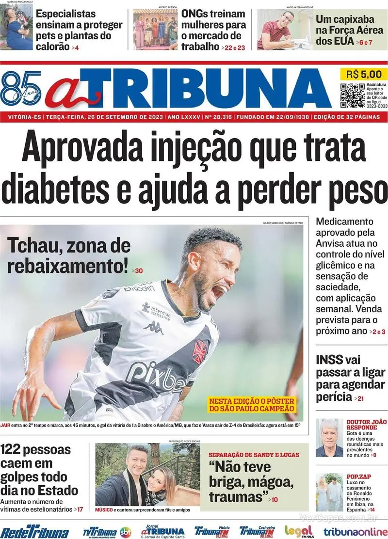 Pelo Campeonato Brasileiro, o Vasco derrotou o América-MG por 1 a 0 em jogo atrasado da 15ª rodada, gol de Jair, e deixou a zona do rebaixamento. Veja as capas dos jornais.