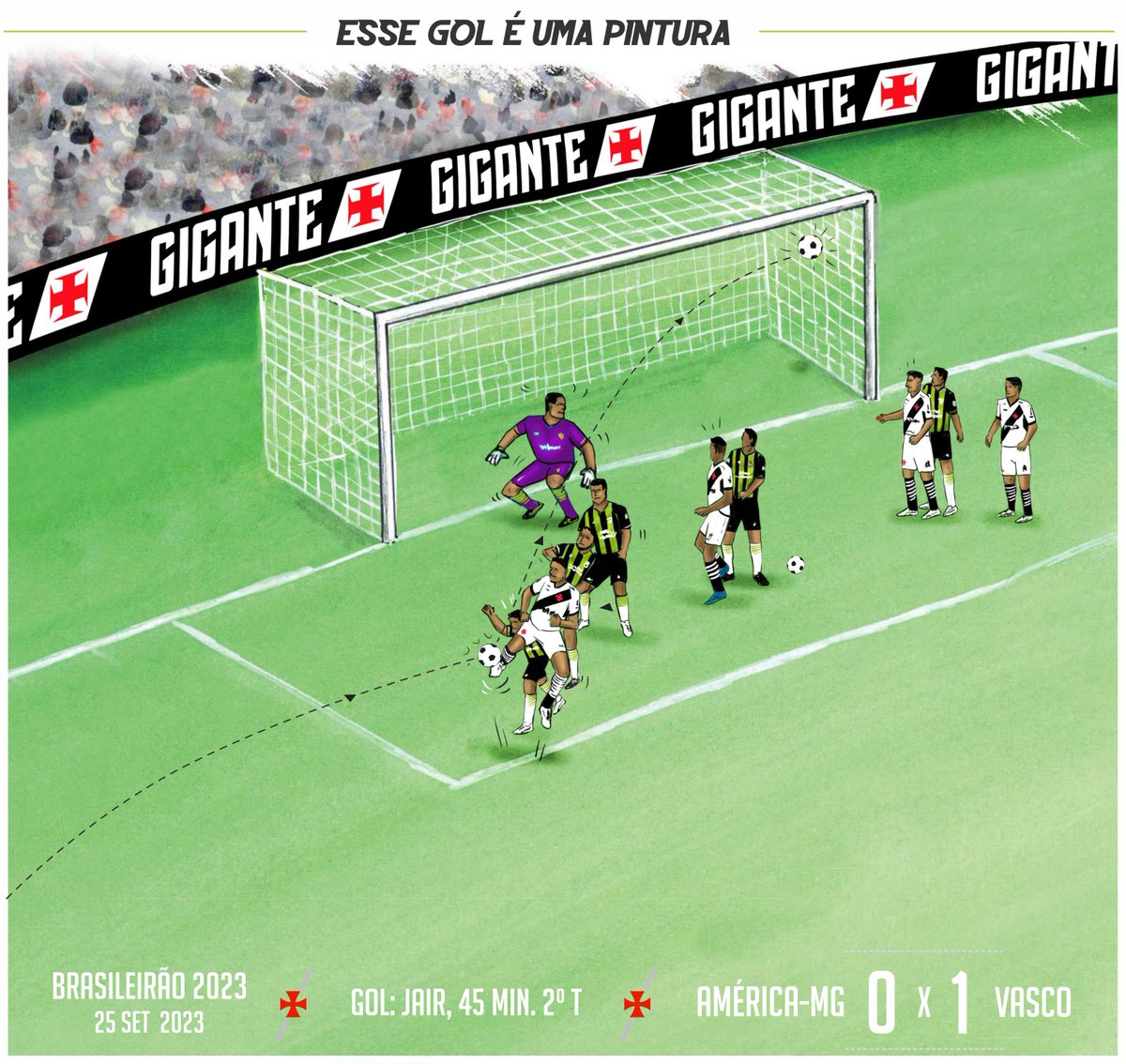 Vasco publica ilustração do gol de Jair contra o América-MG; veja