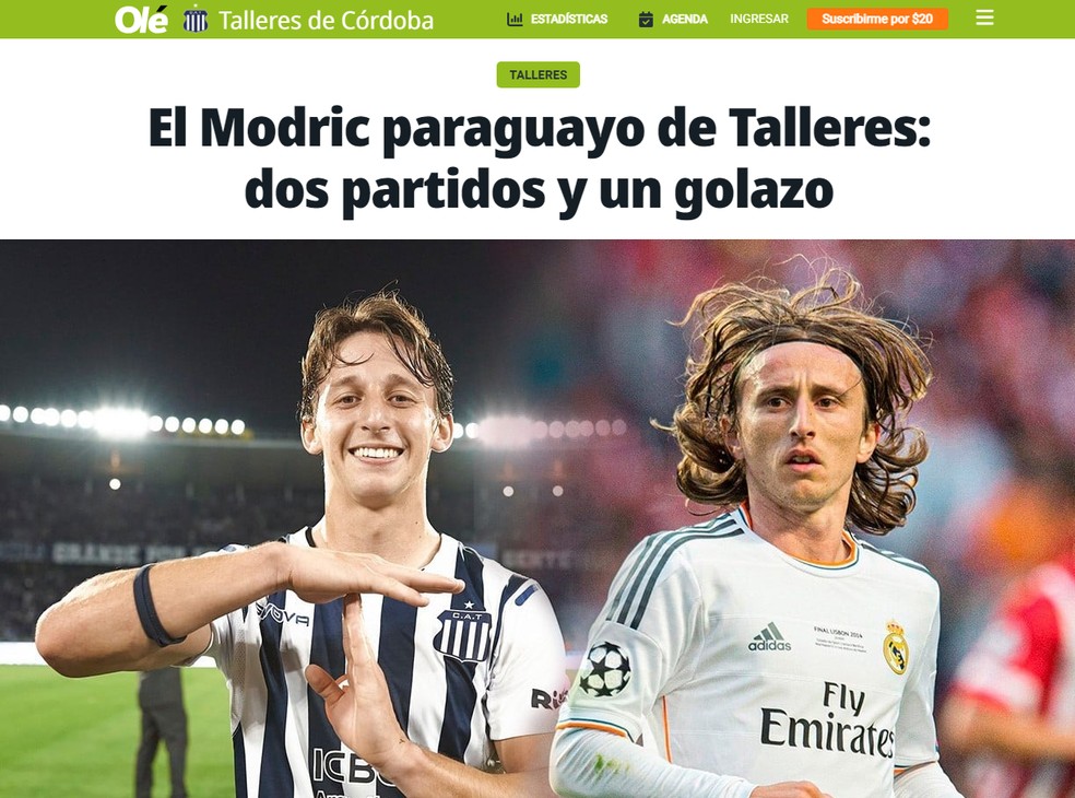 Principal jornal argentino, o diário Olé destacou a atuação do jovem, que ainda tem apenas 21 anos. A publicação, que descreveu o jogador "com grande técnica individual, capacidade de trabalhar a pressão defensiva e facilidade em criar opções perigosas", aponta que a atuação do meia "começa a entusiasmar todos os torcedores" do Talleres.