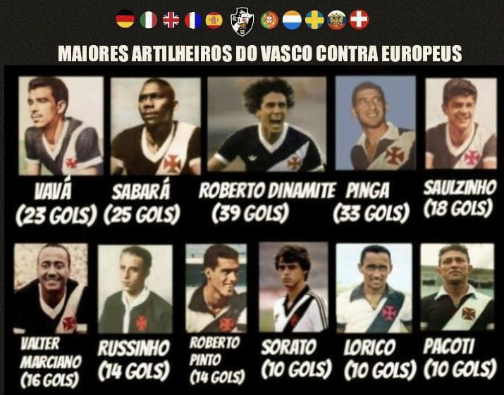 Os maiores artilheiros do Vasco da Gama em confrontos contra europeus! #CRVG 💢