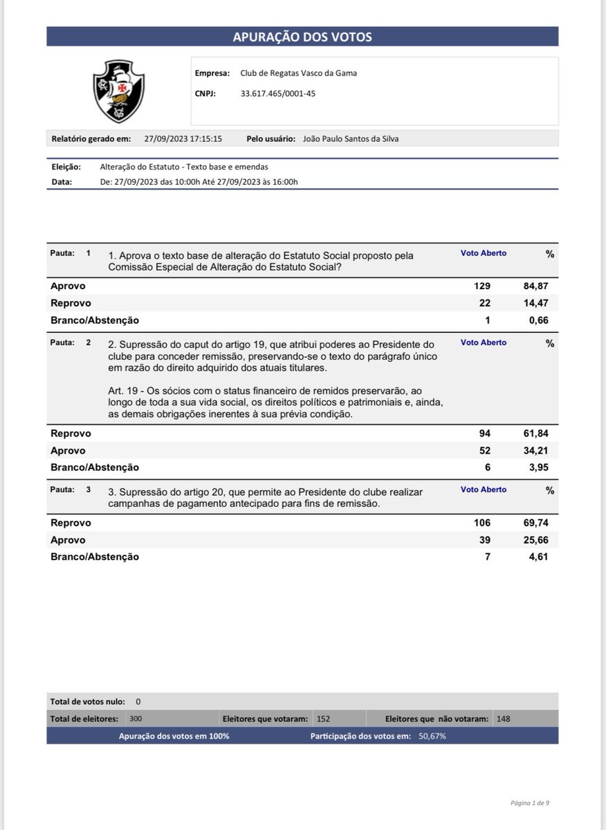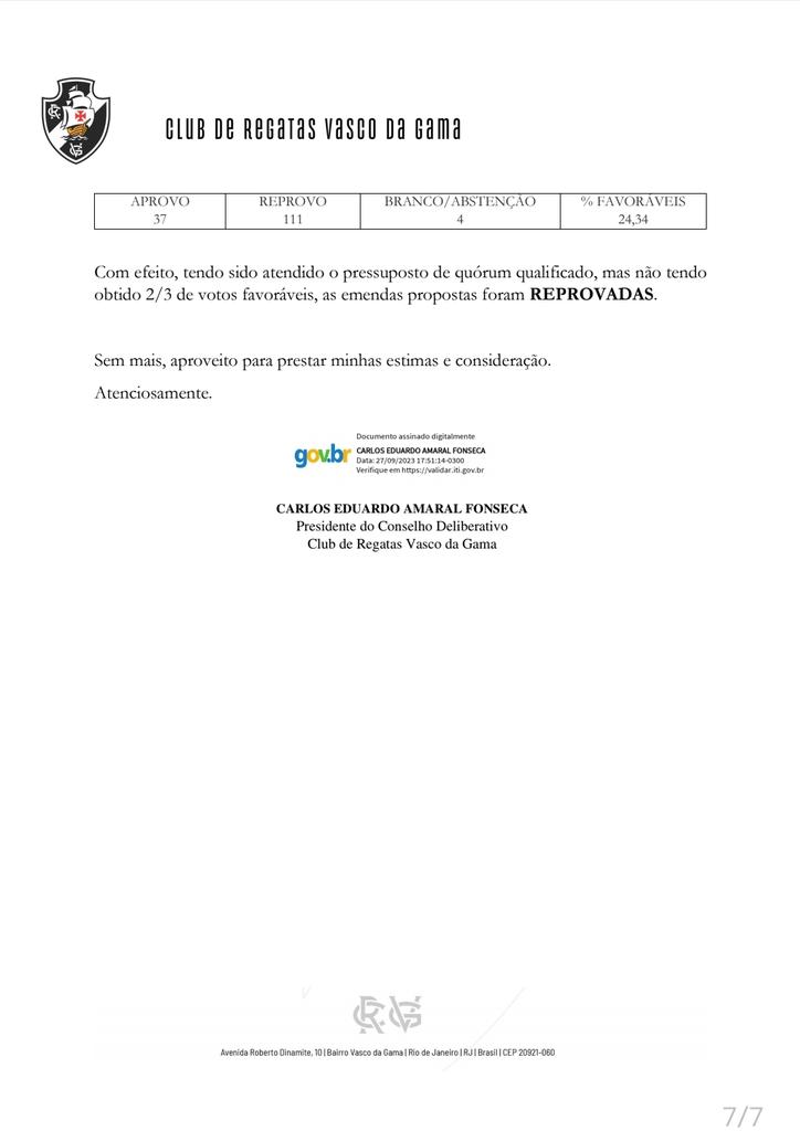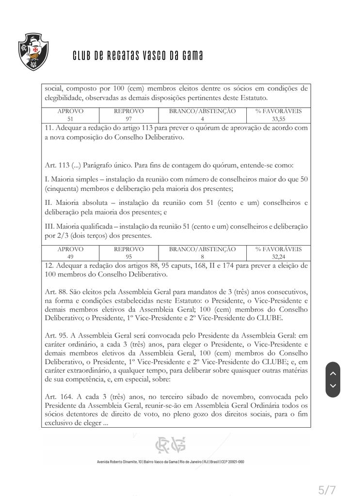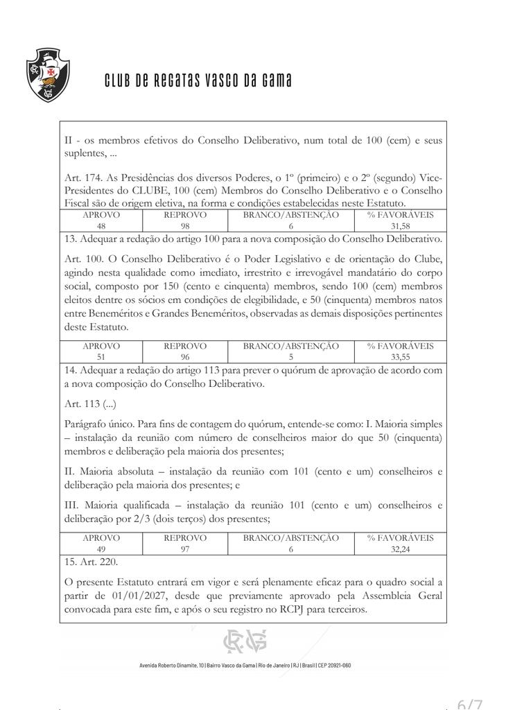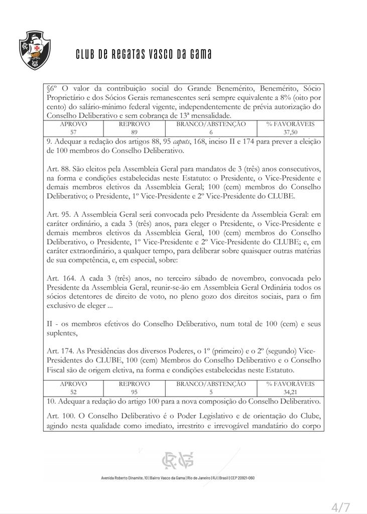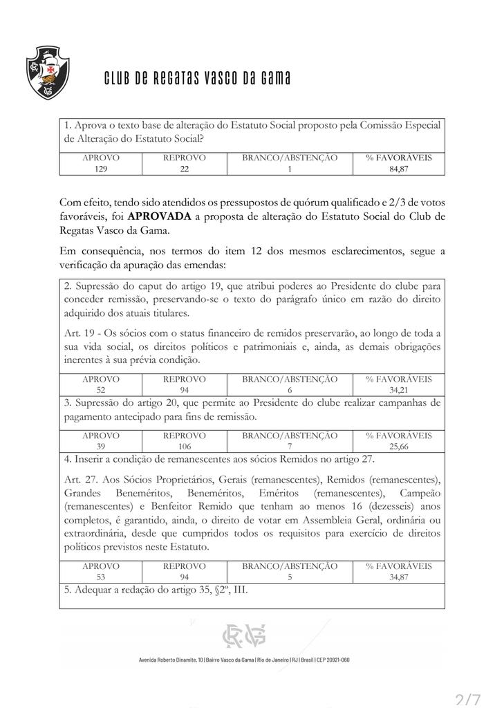 Proclamação do resultado da Sessão do Conselho Deliberativo que deliberou sobre a reforma do Estado Social CRVG. 1/3