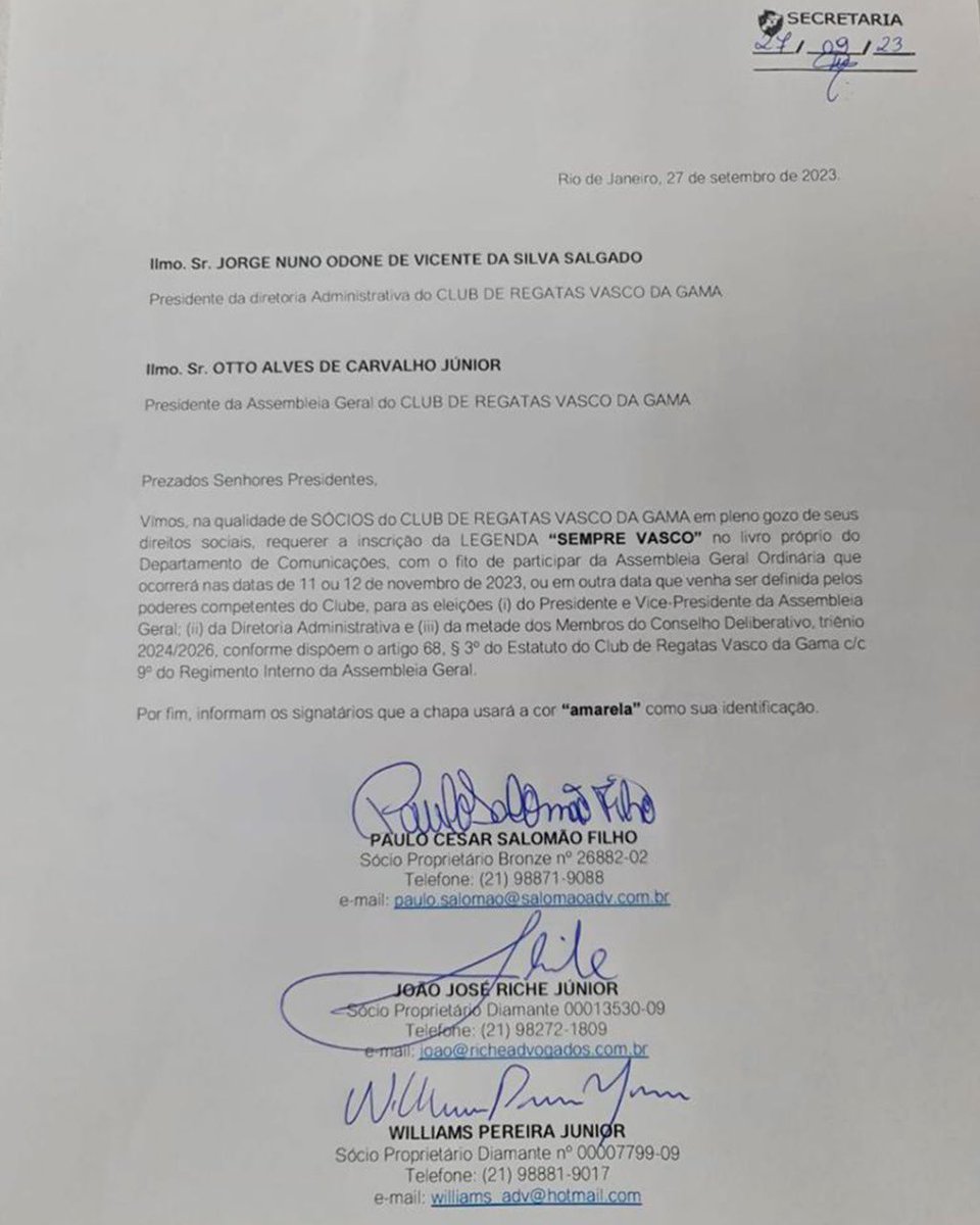 Enquanto nosso Pedrinho estava anunciando a candidatura no @flowsportclub, a chapa Sempre Vasco estava sendo protocolada em São Januário por @joao_riche e o Dr. Paulo Salomão!