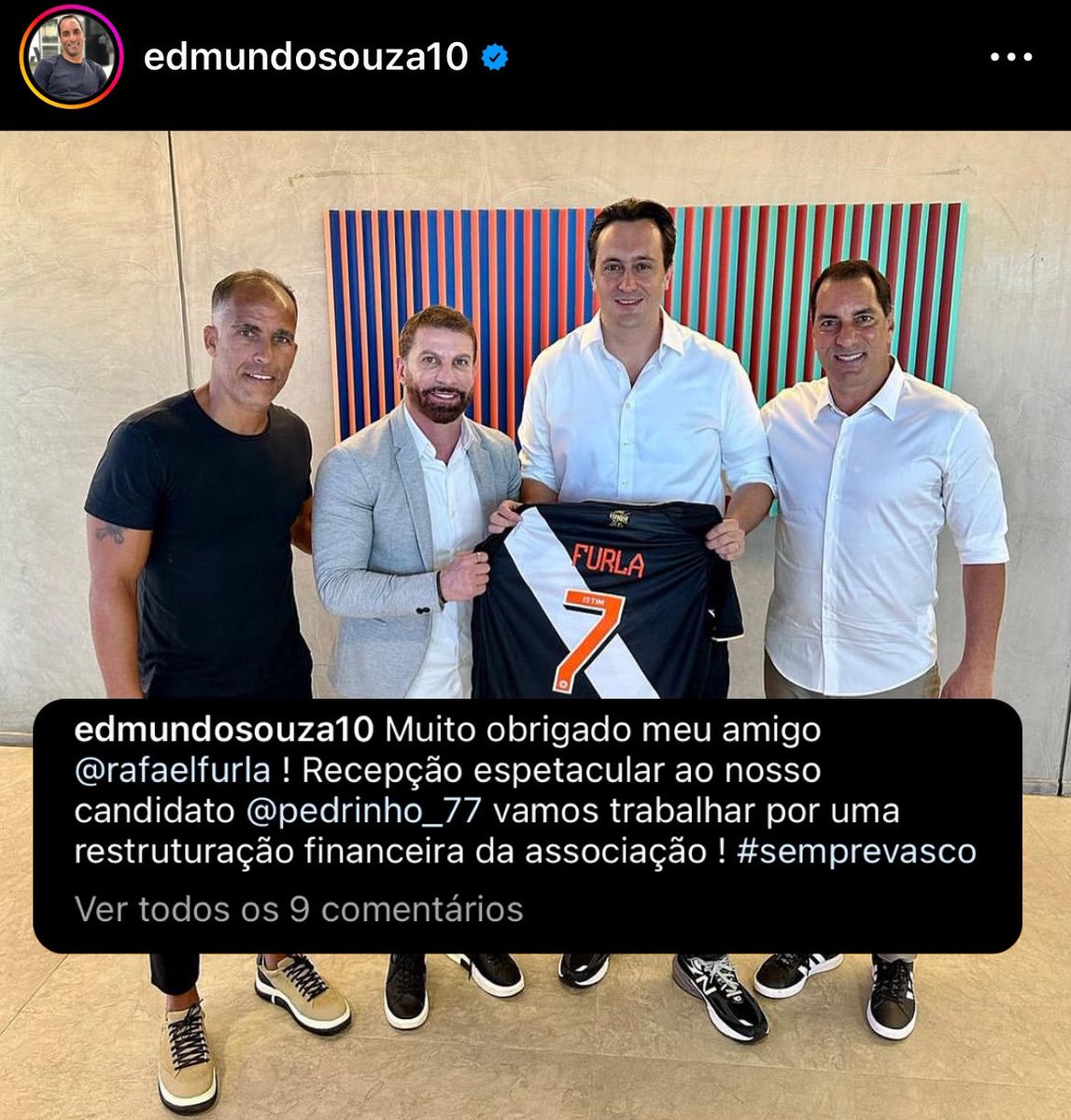 27/09/23 - Pedrinho, Felipe e Edmundo se reuniram com o vascaíno Rafael Furlanetti, sócio da XP Investimentos