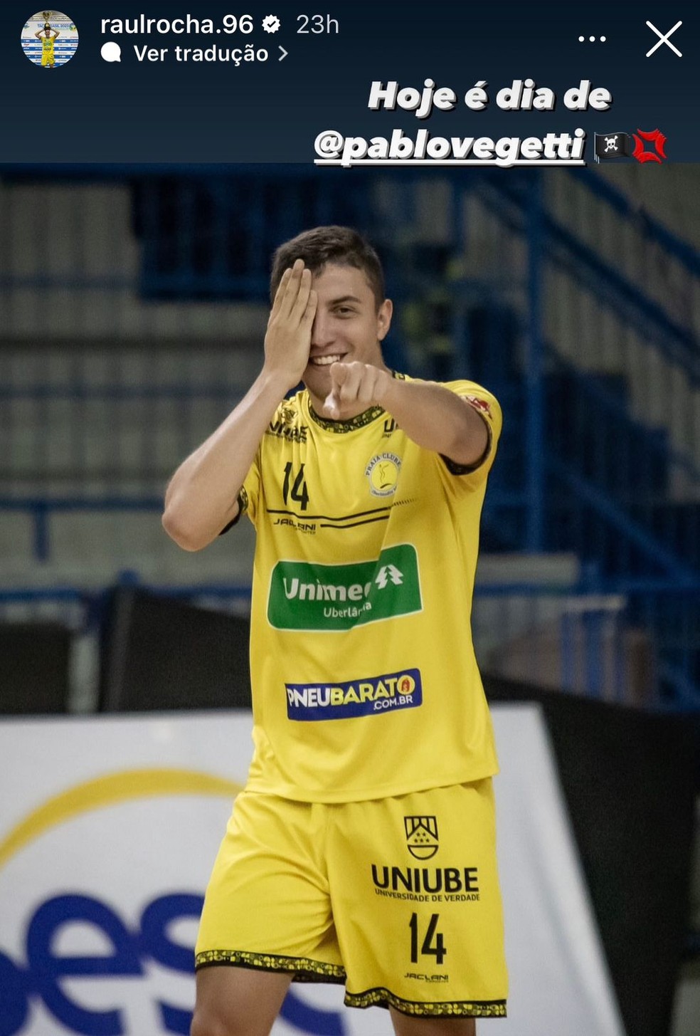 Raul foi contratado pelo Praia em junho deste ano. De volta ao Brasil após seis temporadas no futsal europeu (onde atuou na Itália e Espanha), o ala marcou seu primeiro gol na LNF no último sábado quando lançou a comemoração.