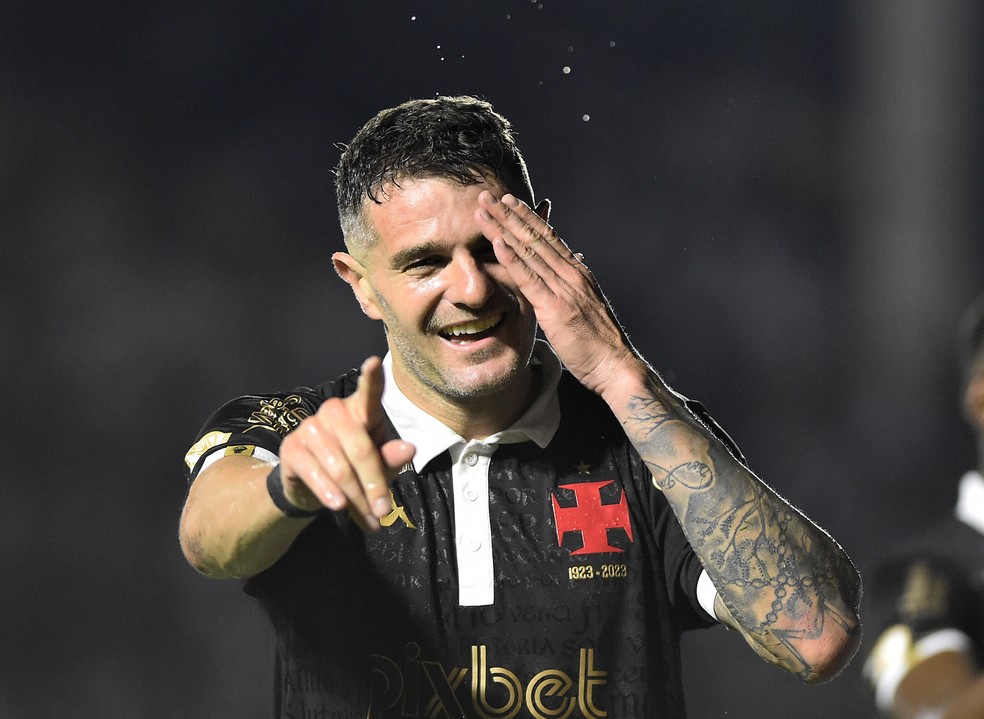 Com seis gols em oito jogos, Vegetti tem conduzido o Vasco na reação no Brasileirão. A comemoração do jogador está ligada ao Belgrano, seu ex-clube. Pirata é o apelido do time sul-americano, onde o atacante foi artilheiro do último Campeonato Argentino.