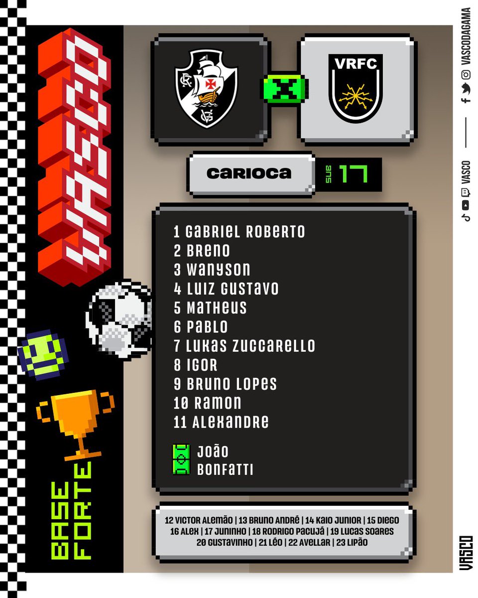 30/09/23 - Sub-15: Confira a escalação do Vasco para o jogo contra o Volta Redonda