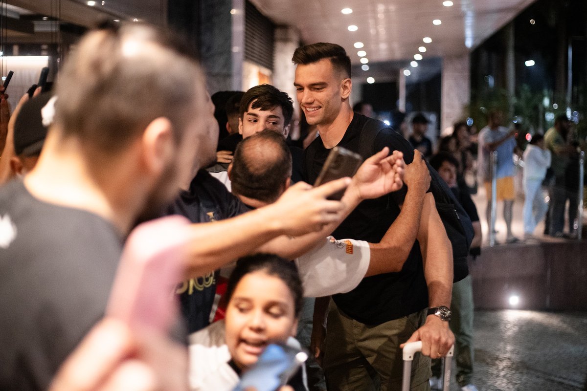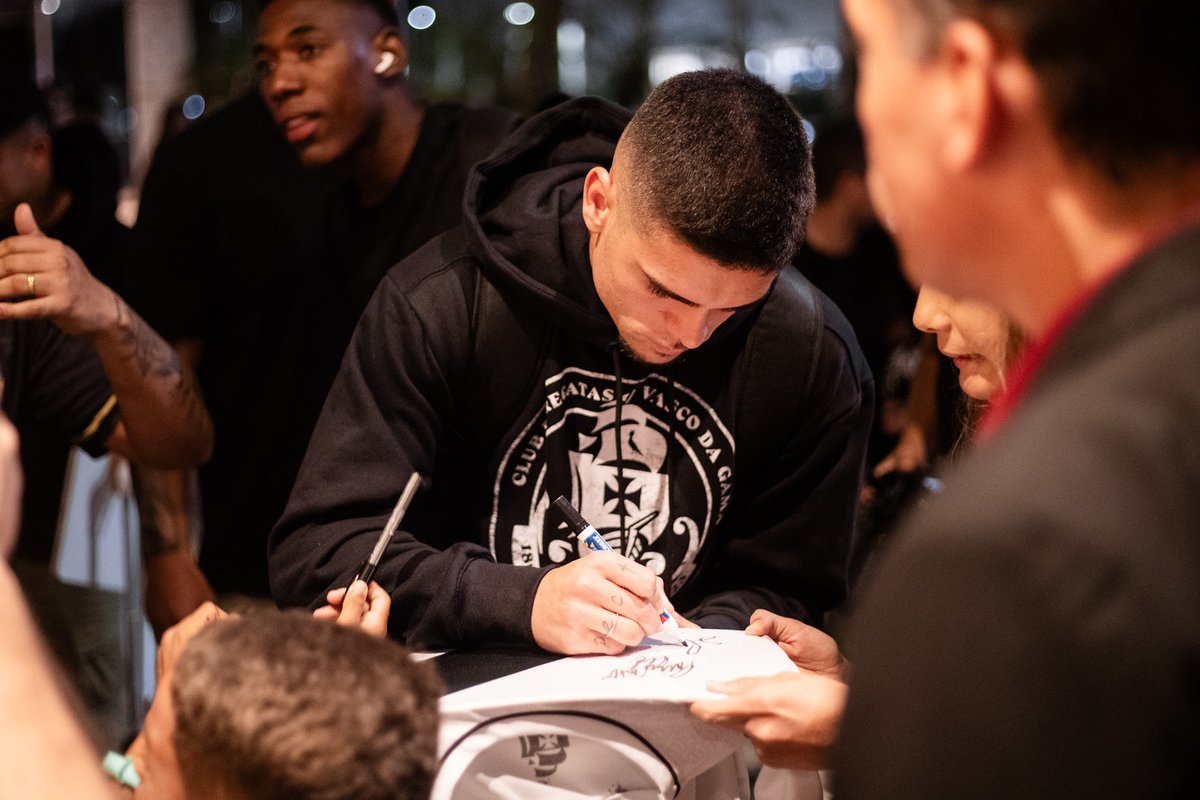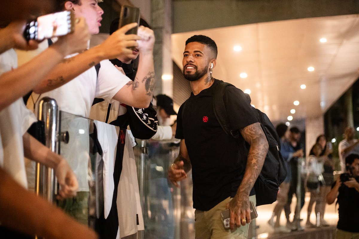 Jogadores foram recepcionados por torcedores vascaínos na chegada ao hotel em Santos