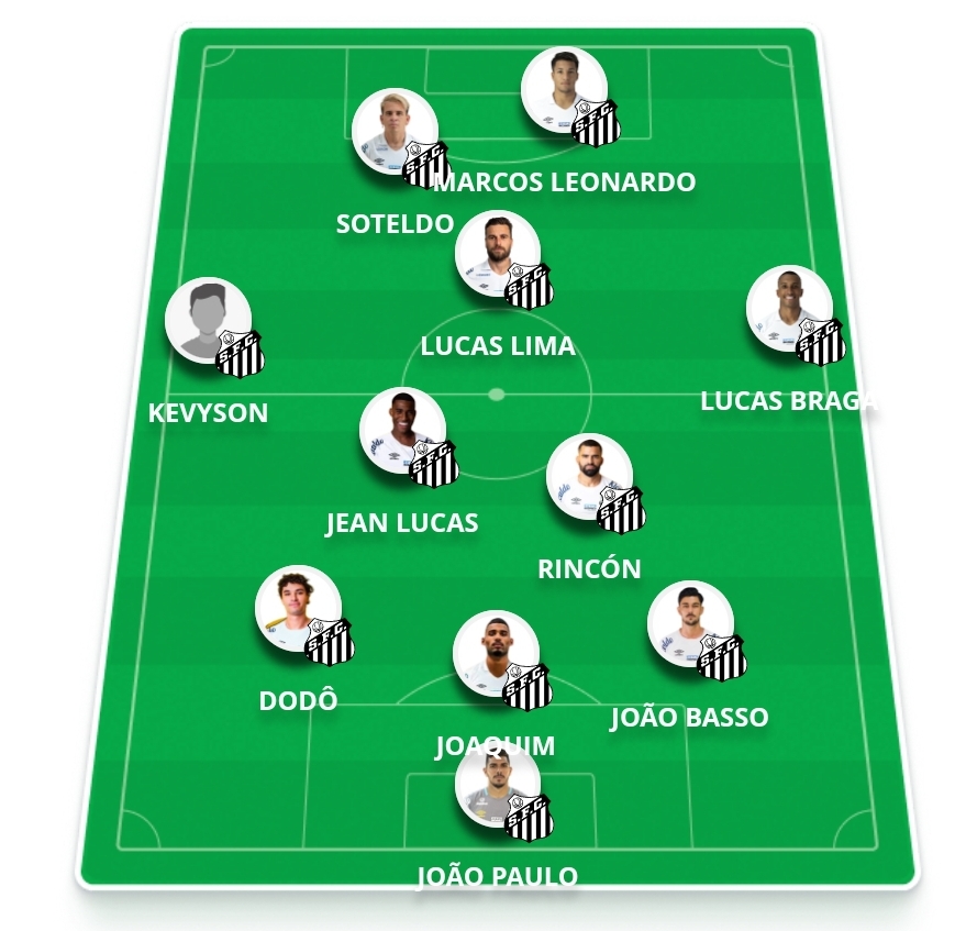 A tendência é que seja mantida a escalação do time que venceu o Bahia, com Dodô improvisado na zaga, Lucas Braga e Kevyson como alas e o ataque formado por Soteldo e Marcos Leonardo. Mendoza, vice-artilheiro do Peixe na temporada, segue como desfalque devido a um estiramento na panturrilha direita.