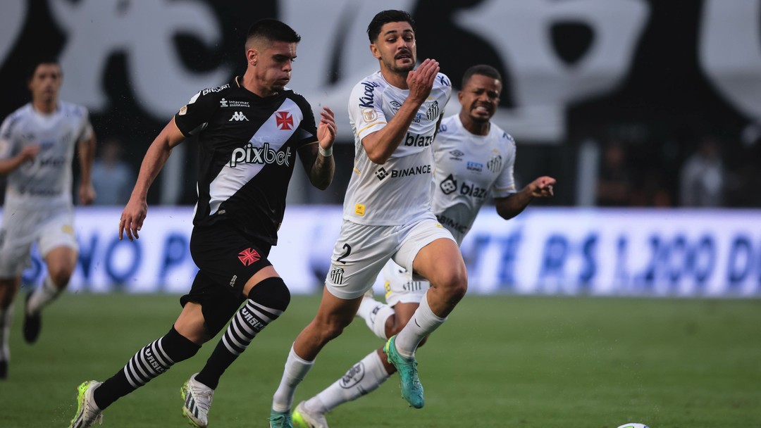 O primeiro tempo entre Santos e Vasco, na Vila Belmiro, foi bastante movimentado. A partida começou bem equilibrada, e logo aos 10 minutos, o Peixe saiu na frente. Pumita Rodríguez fez pênalti em Marcos Leonardo. Na cobrança, o jovem converteu e abriu o placar na Vila.