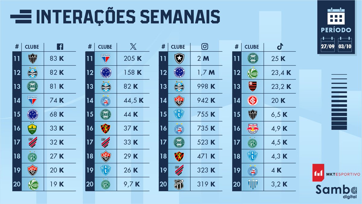No Instagram, o Peixe fechou na 4ª colocação, lugar que não figurou nas últimas 22 semanas.