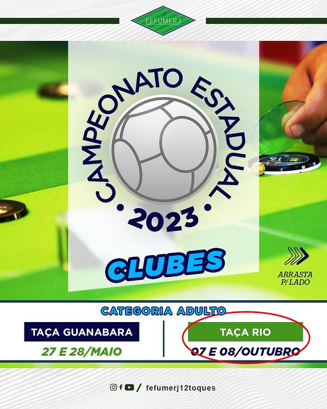 Neste final de semana, 07 e 08 de outubro, será disputado a Taça Rio de Clubes da categoria Adulto. A competição será realizada no Botafogo FR @bfrfuteboldemesa a partir das 9h30. Confira a tabela ! ⏩