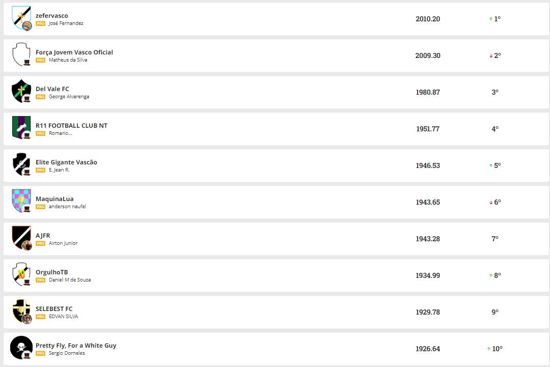 06/09/23 - Cartola: Confira a classificação da Liga NETVASCO após a 22ª rodada