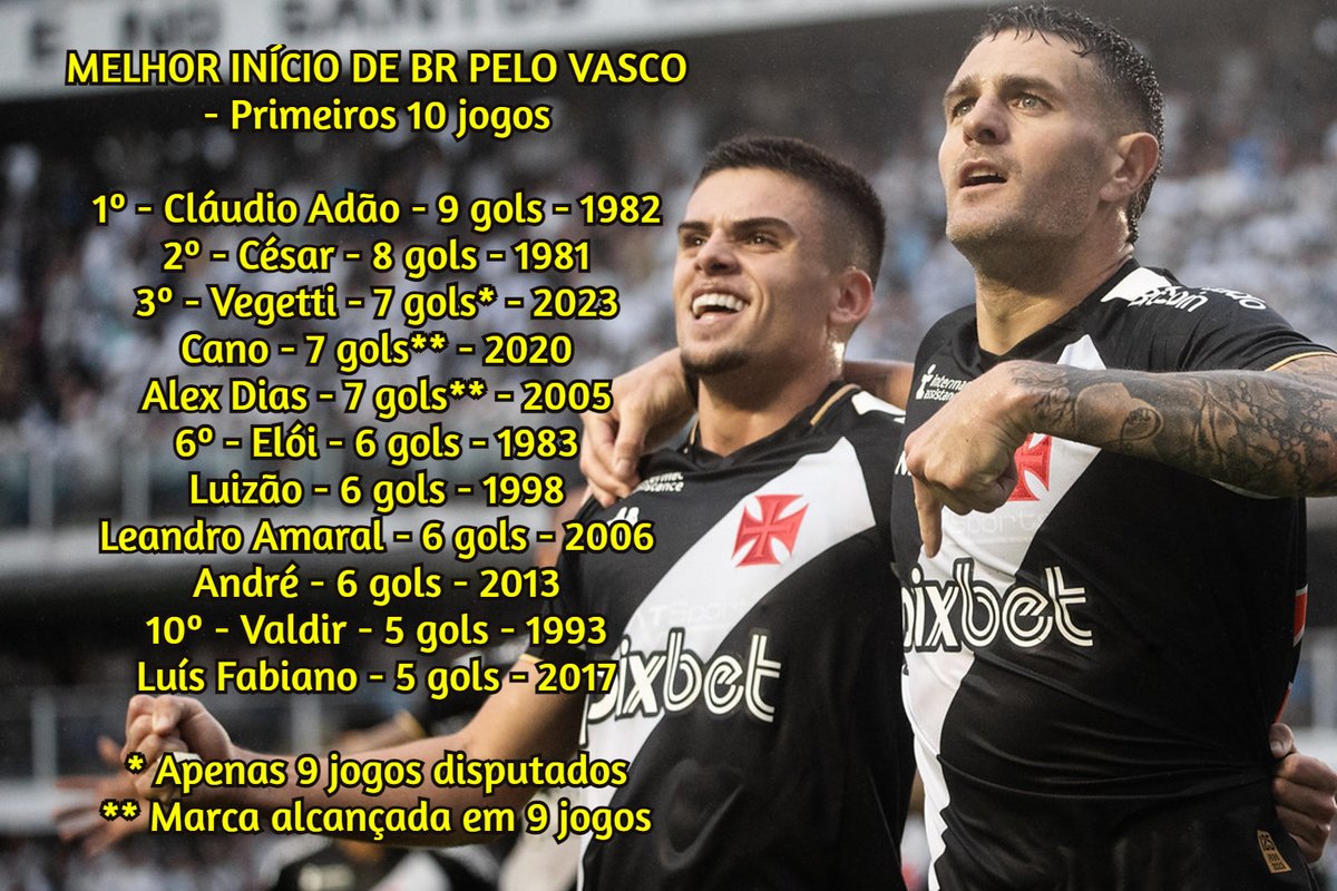 Vegetti já tem um dos melhores inícios de um atacante do Vasco em seu primeiro Brasileiro pelo clube. Contra o São Paulo, o atacante completará 10 jogos com a camisa vascaína e caso marque duas vezes igualará o recorde de Cláudio Adão, em 1982.