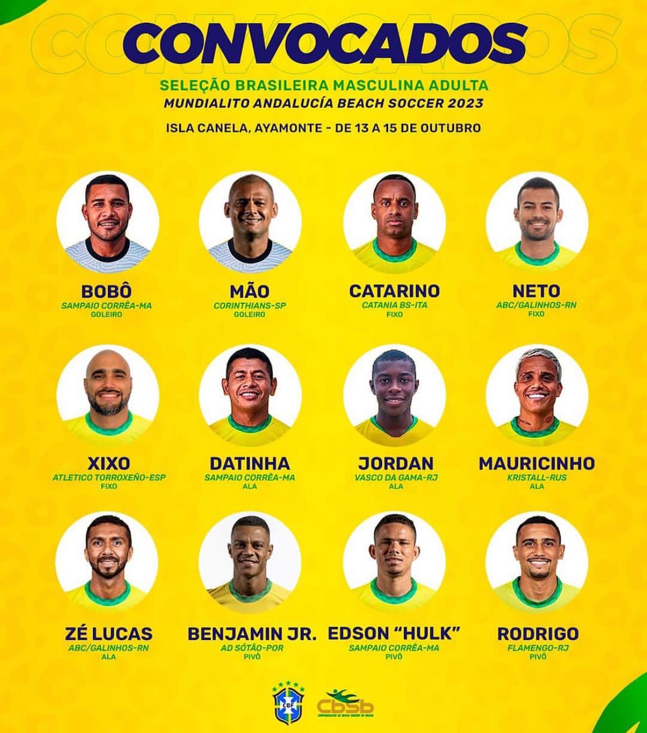 O técnico Marco Octavio convocou a seleção brasileira masculina de beach soccer para a disputa do Mundialito, em Andaluzia, na Espanha. 🇧🇷⚽️🏖️