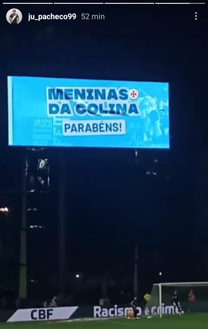 Feminino: Telão de São Januário mostrou parabéns ao time pela vitória sobre o Duque de Caxias; veja foto
