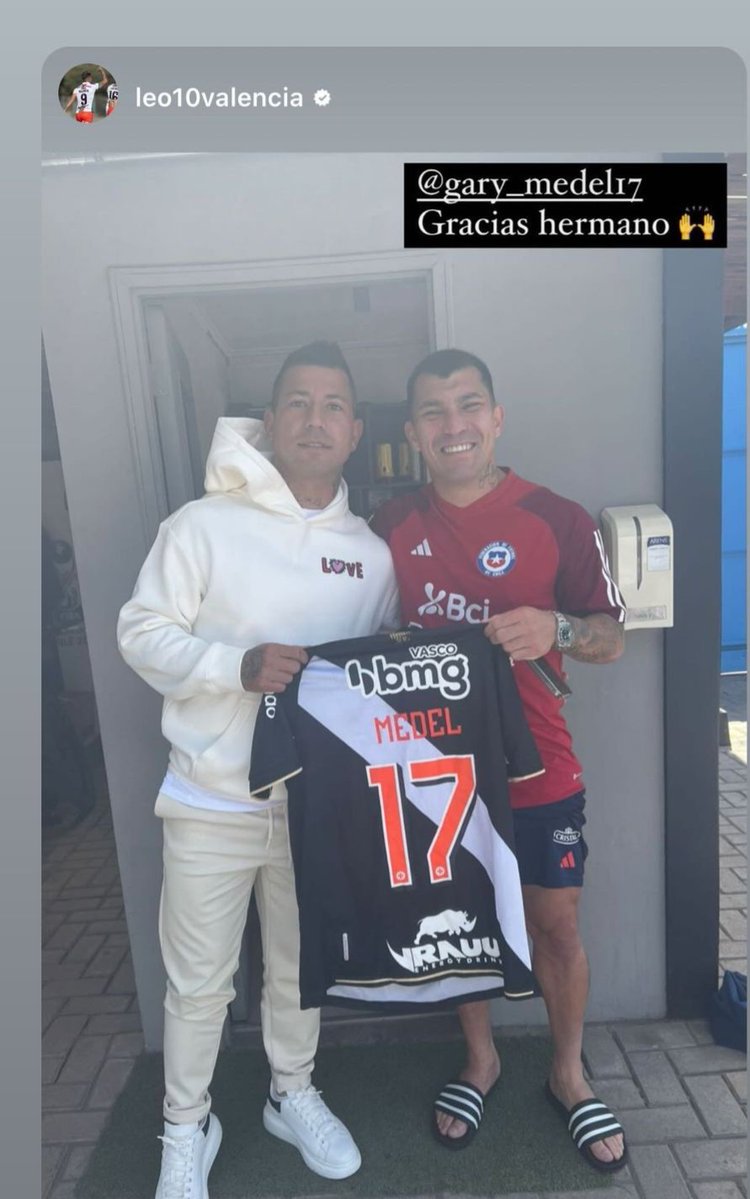 Gary Medel ataca novamente e dá uma camisa sua do Vasco da Gama ao meio-campista Valencia, que teve passagem pelo Botafogo e chegou a ser ventilado no Gigante da Colina