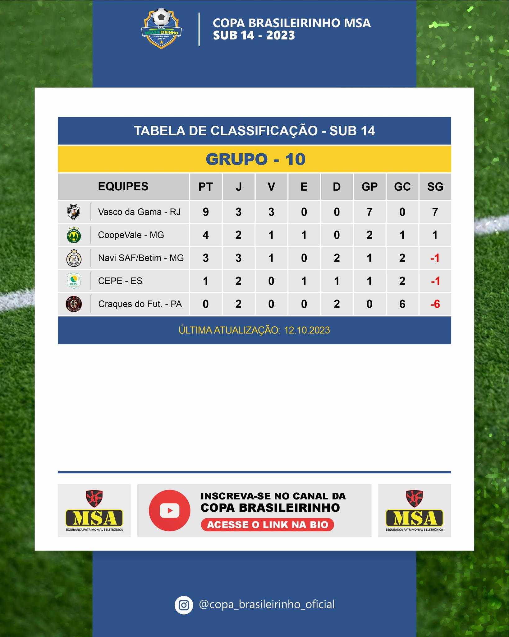 Acompanhe a tabela de classificação das equipes do SUB 14.
