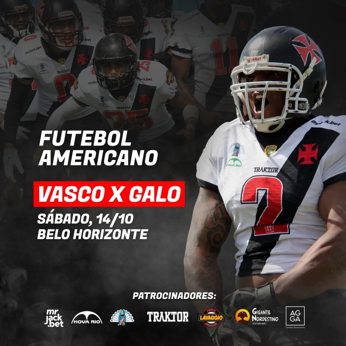 No futebol americano temos o último jogo da fase de grupos contra o favorito ao título Galo FA, somente a vitória pode nos classificar para os playoffs.