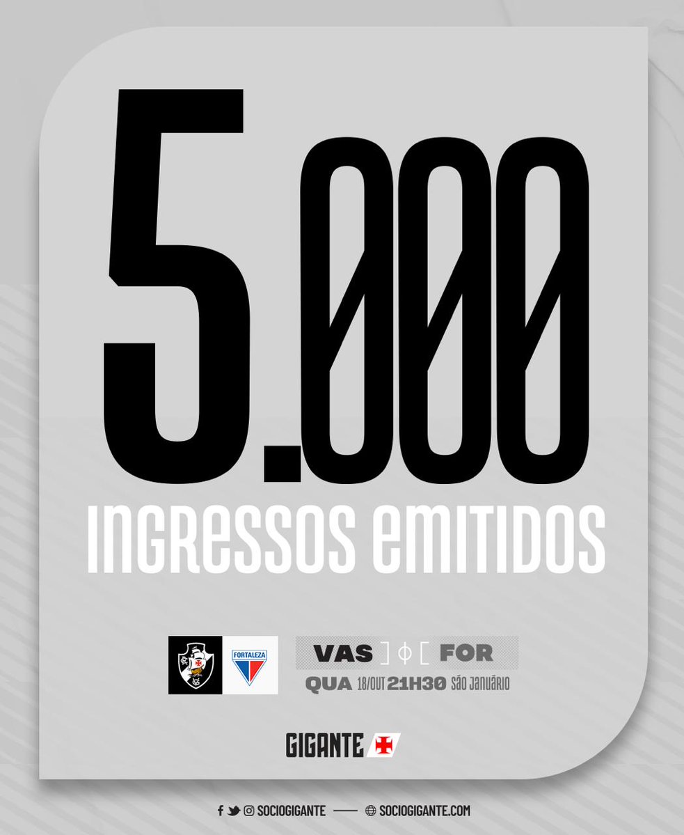 Já foram emitidos 5 mil ingressos para Vasco x Fortaleza