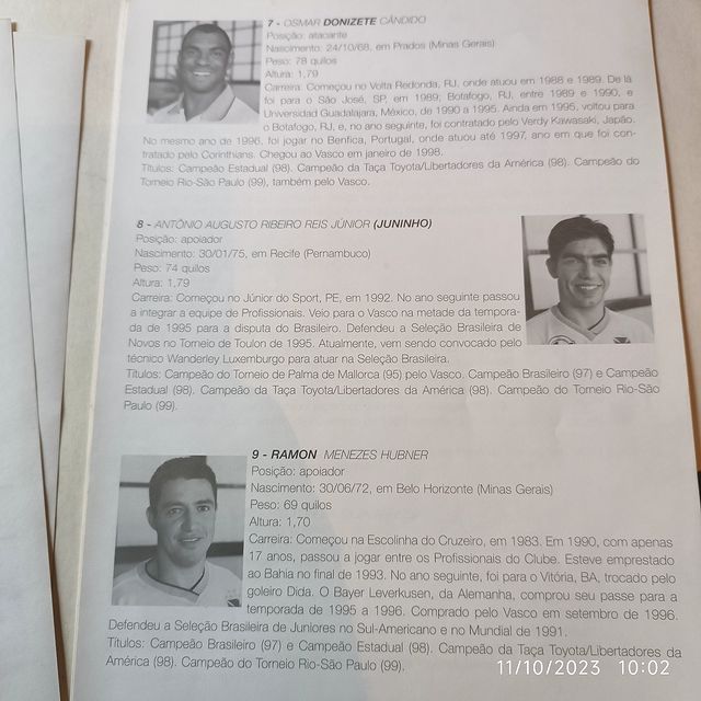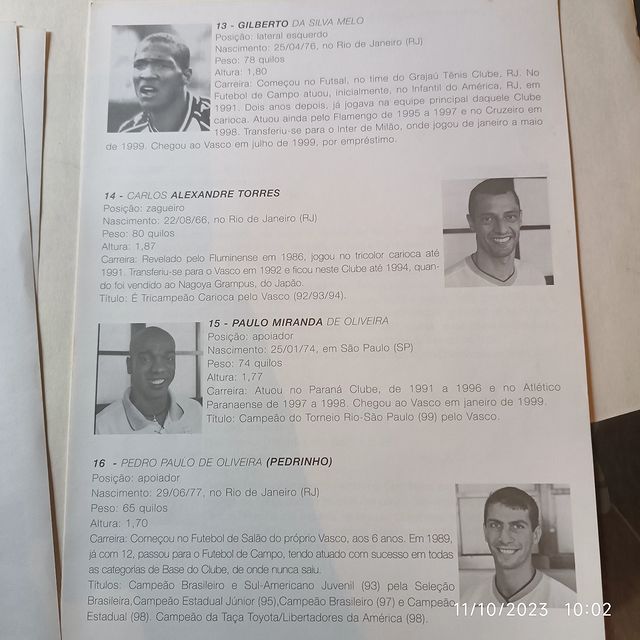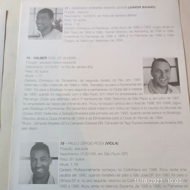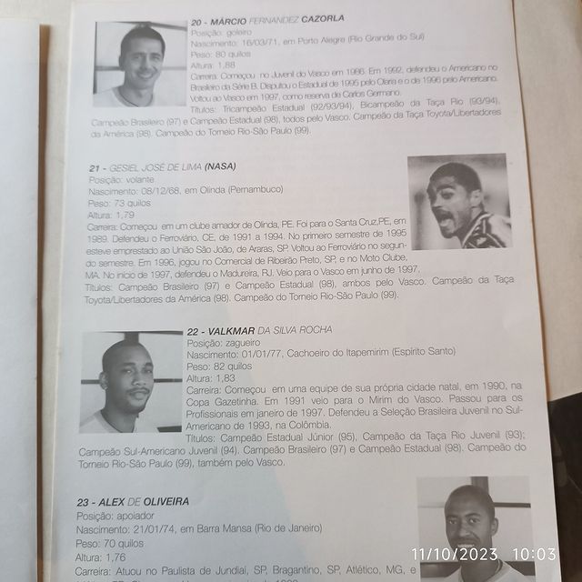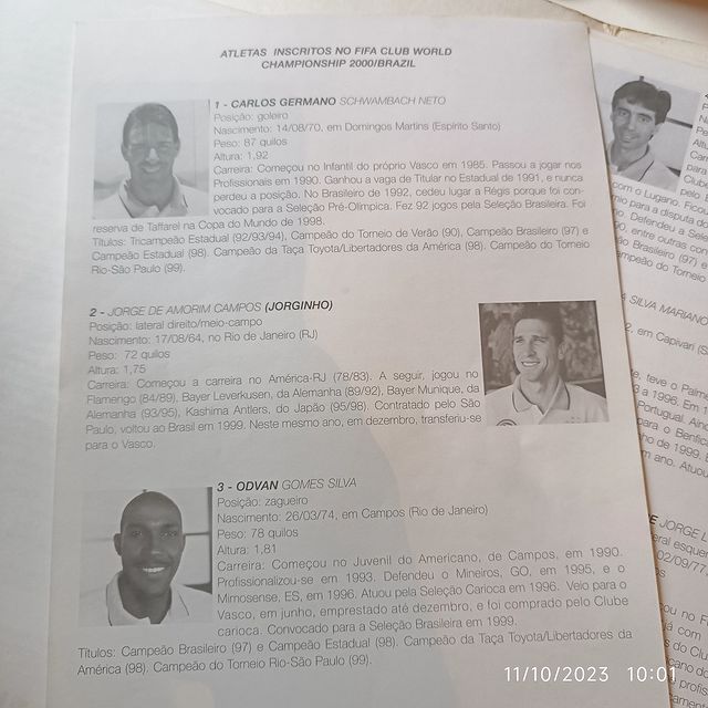 Dossiê preparado pela Assessoria de Imprensa do C. R. Vasco da Gama da publicação dos atletas inscritos no FIFA CLUB WORLD - CHAMPIONSHIP 2000/BRAZIL.