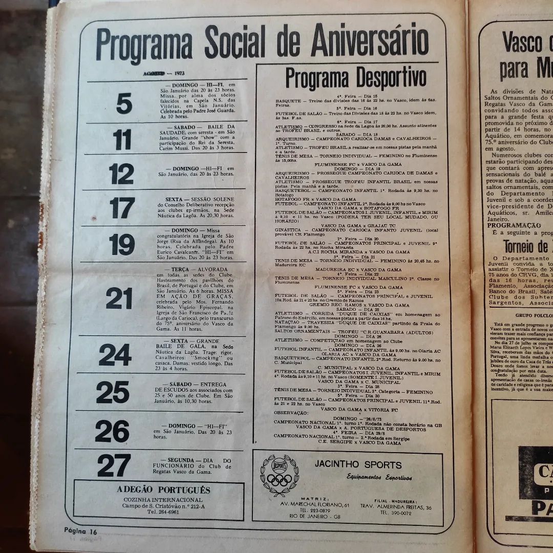 Edição de aniversário dedicado ao Club de Regatas Vasco da Gama pela passagem do seu 57° (1898 a 1955) ano de existência laboriosa em prol dos desportos brasileiros com fotos inéditas.