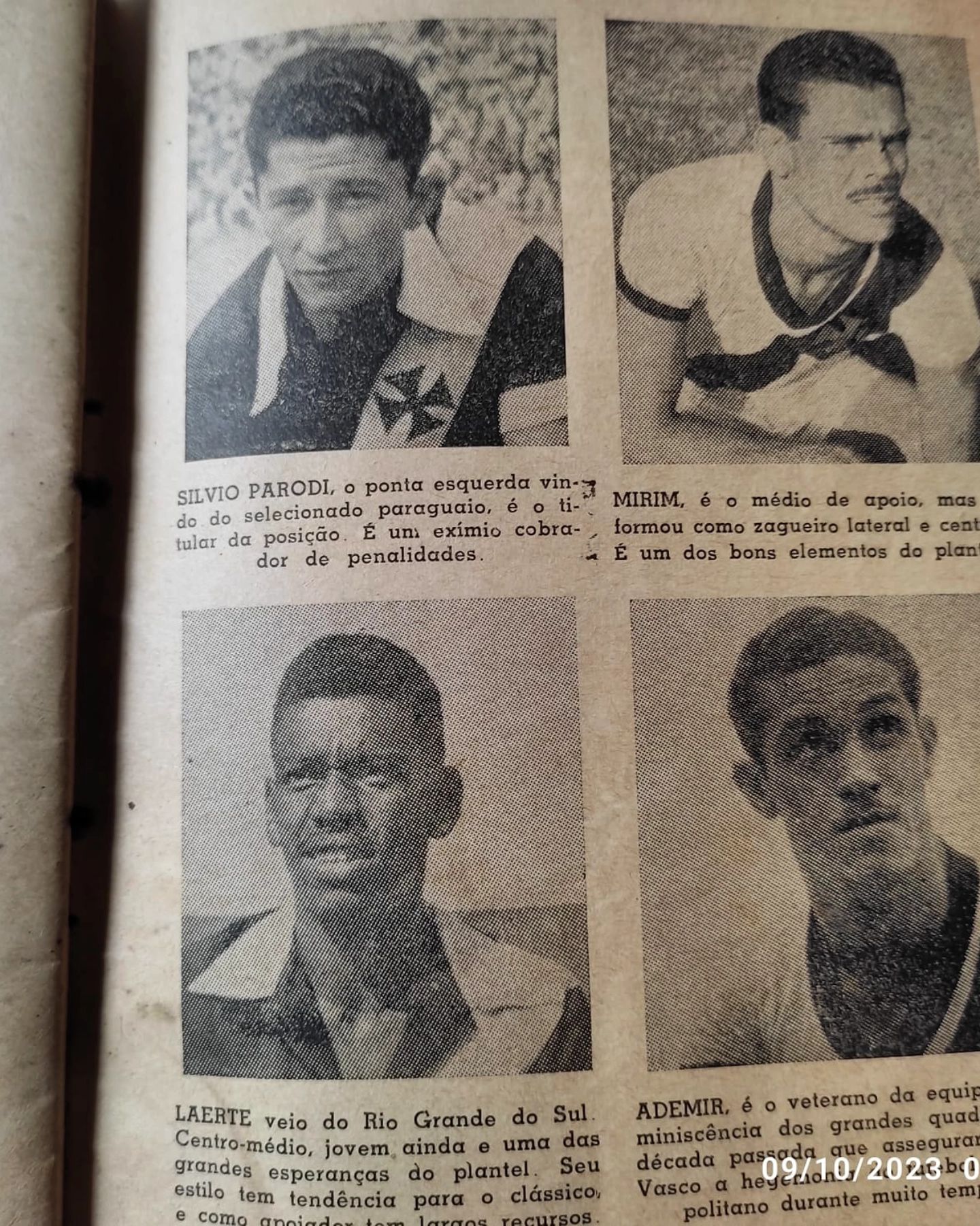 Formação do time na capa da revista: Gonzalez, Paulinho, Haroldo, Mirim, Orlando e Dario. Agachados estão Sabará, Walter, Vavá, Pinga e Parodi.