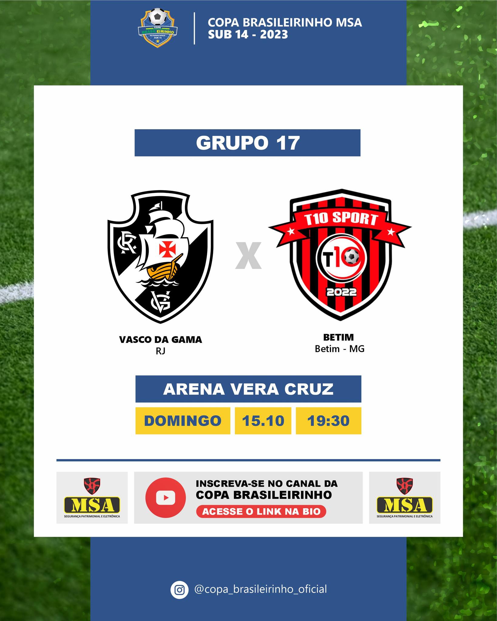 Sub-14: Pela 2ª fase da Copa Brasileirinho, Vasco enfrenta o T10 Betim-MG neste domingo às 19h30