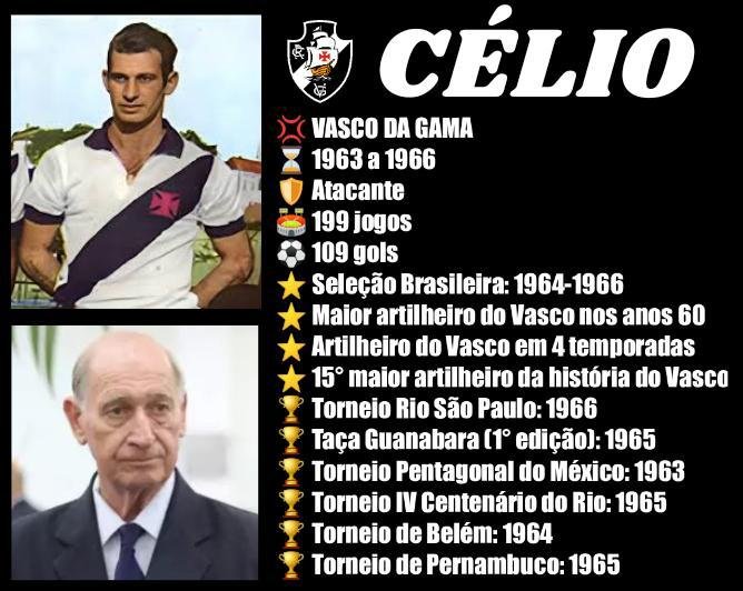 Há 83 anos nascia o saudoso Célio Taveira, o ídolo Célio, o maior artilheiro do Vasco da Gama na década de 60. Fez grande parceria de ataque com o Saulzinho (falecido em 2023). Célio era paulista e morava em João Pessoa-PB, faleceu em 2020 vítima da Covid-19.